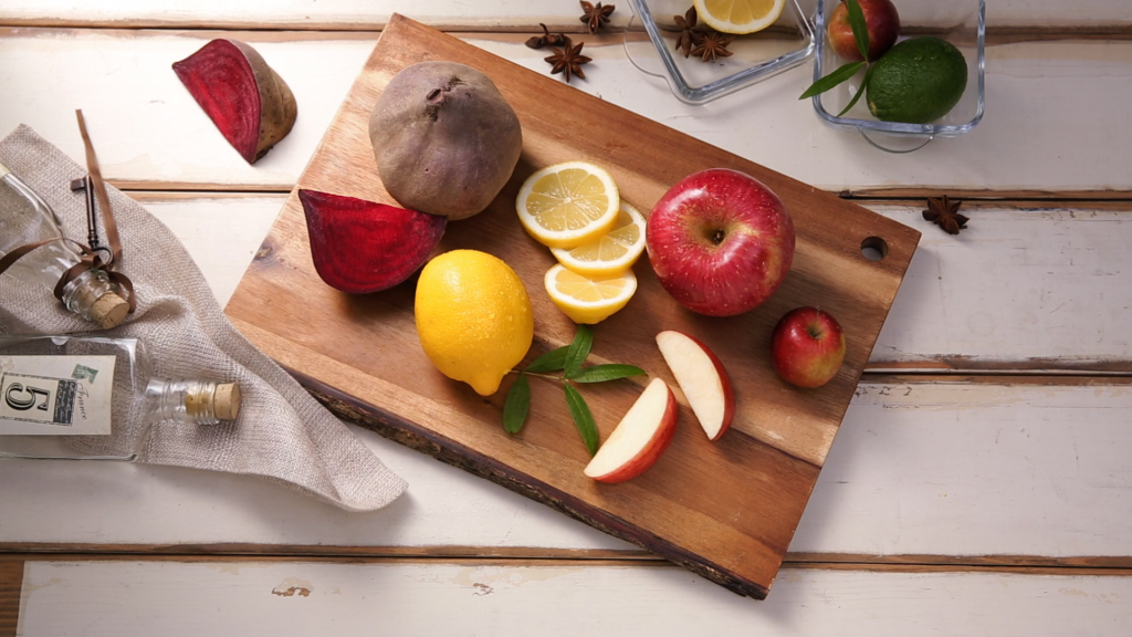 Potrebno je samo da dobro operete cveklu i isečete je na manje komade, zatim oljustite koru sa limuna.